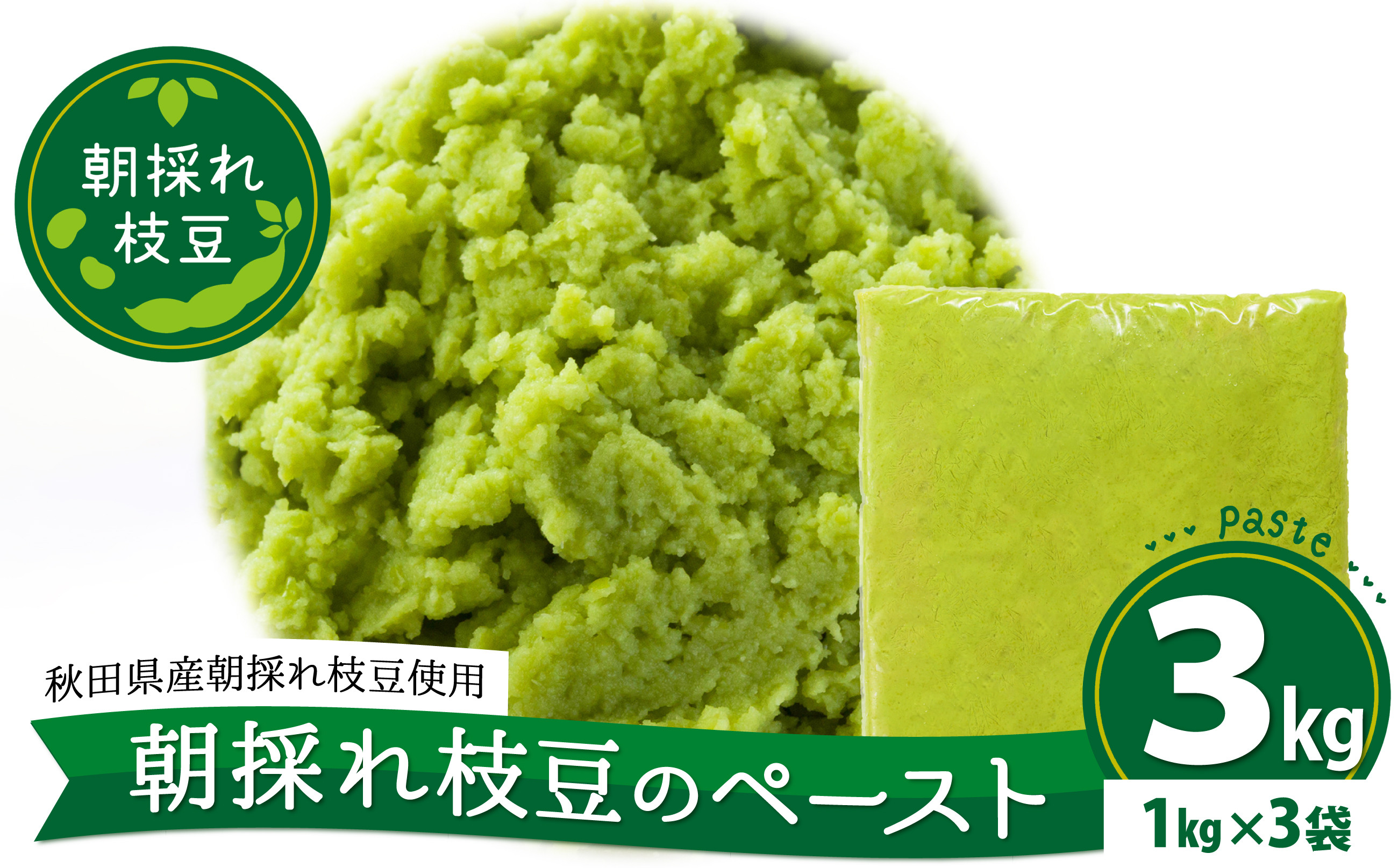 お料理やお菓子づくり、焼き菓子やシェイクなどのデザート系レシピにも相性が抜群です 朝採れ枝豆のペースト3kg(1kg×3袋) 200P5701 / 秋田 秋田県 東北 大館 大館市 野菜 枝豆 豆 えだまめ エダマメ えだ豆 エダ豆 お取り寄せ おつまみ 朝採れ あきたほのか むき枝豆 むき豆 便利 手軽 むき身 製菓材料 冷凍 小分け ペースト