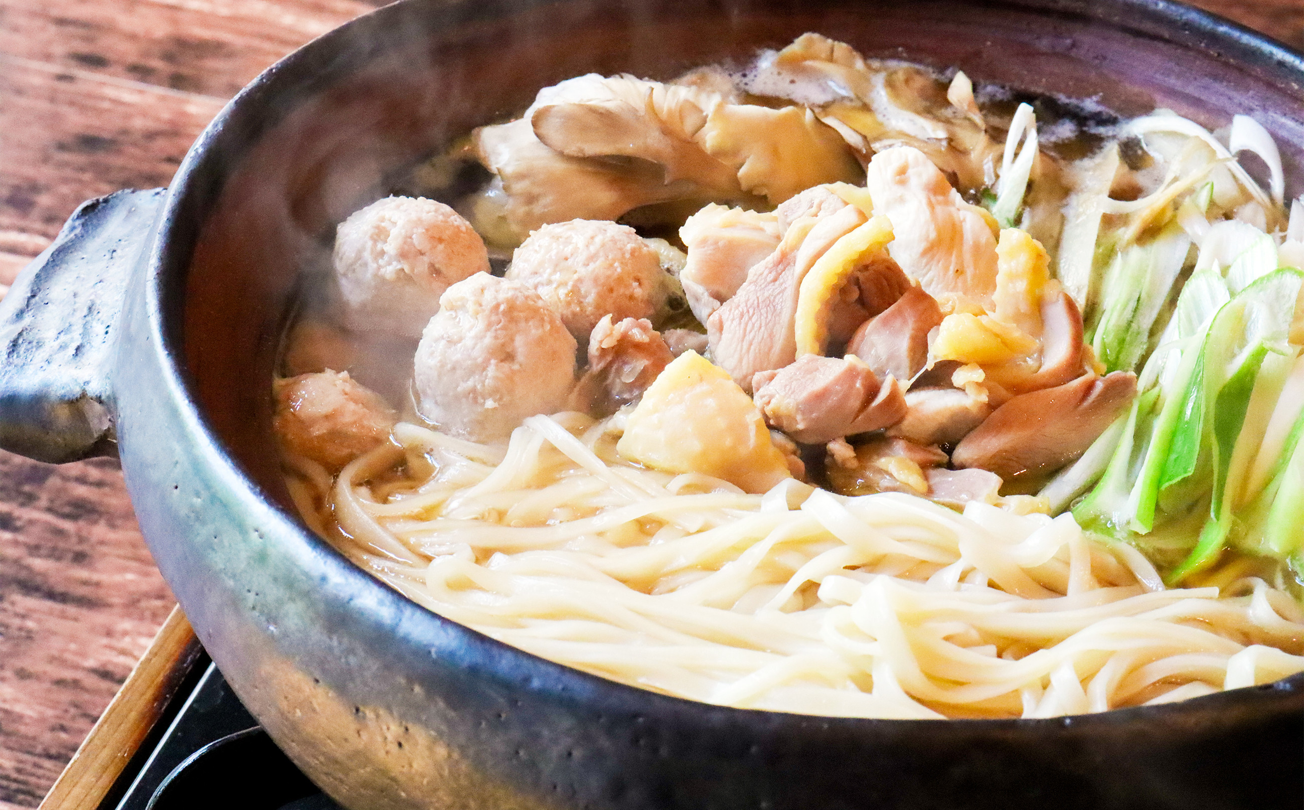 日本三大地鶏の一つ「比内地鶏」と日本三大(五大)うどんの一つ「稲庭うどん」を同時にお楽しみ頂けます。
