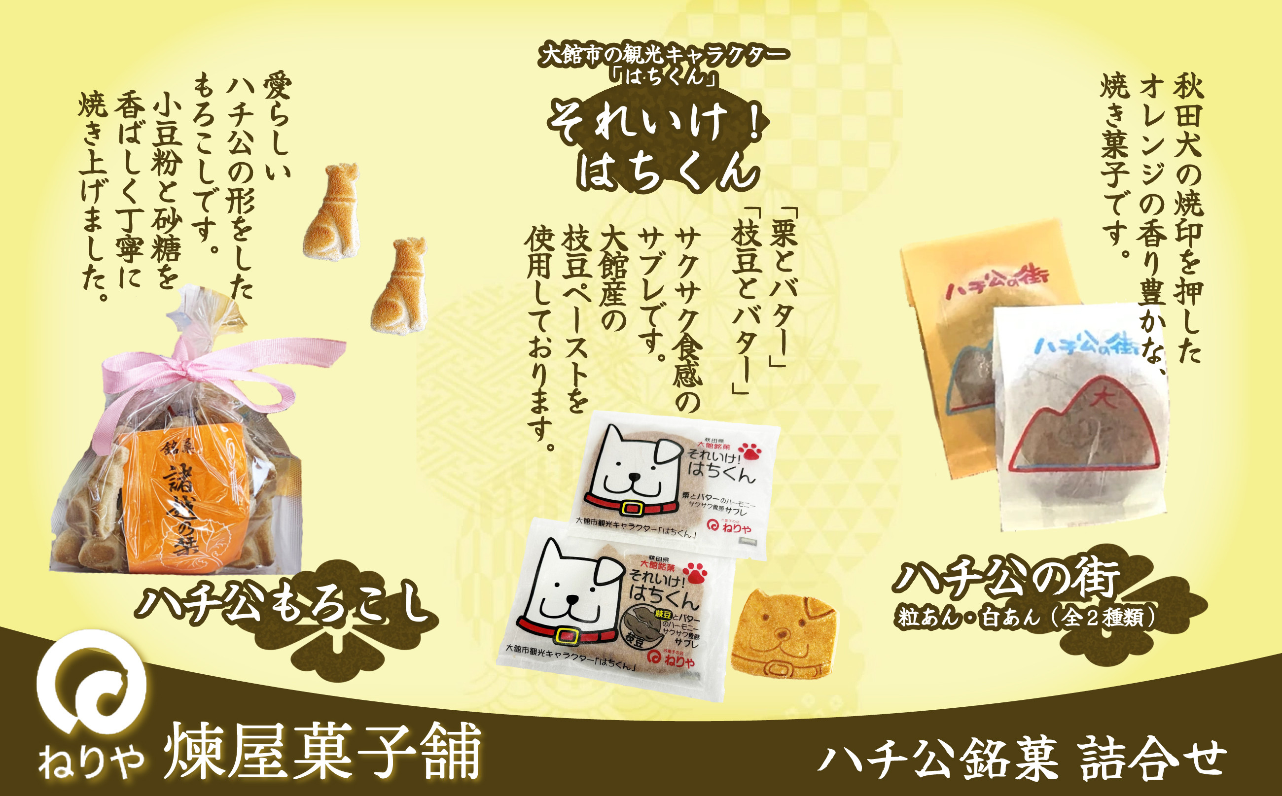 東北 秋田 大館 菓子 ギフト プレゼント 贈り物 母の日 父の日 敬老の日 誕生日 記念日 お祝い サブレ 粒あん つぶあん 白あん もろこし 焼き菓子 菓子 スイーツ 煉屋 煉屋菓子舗 ねりや 焼菓子 オレンジ ハチ公 はち公 はちこう 和菓子 洋菓子 秋田犬の里 はちくん