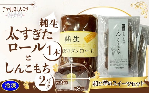 生クリームロールケーキとしんこ餅のセット 純生太すぎたロール1本としんこもち2パックのセット 50P5615 / 東北 秋田 大館 大館市 菓子 洋菓子 和菓子 セット ギフト プレゼント 贈り物 母の日 父の日 敬老の日 誕生日 記念日 お祝い しんこ餅 しんこもち ロールケーキ