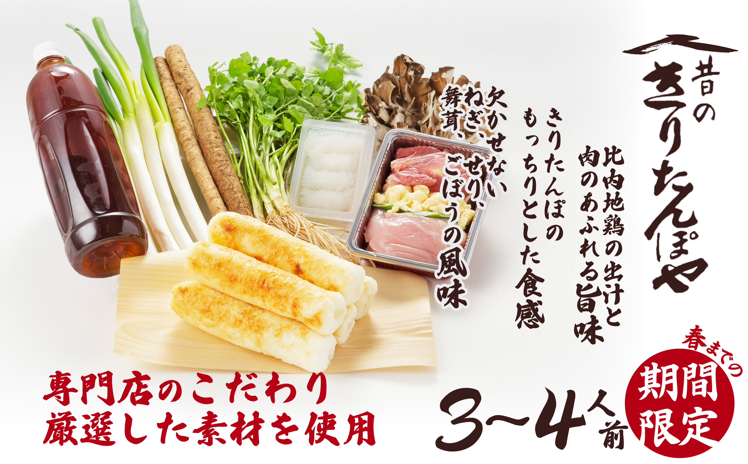 昔ながらの手作り炭火焼きのきりたんぽ 本場大館きりたんぽ鍋セット(3~4人前) 150P1515 / おすすめ グルメ 鍋 期間限定 葱 ゴボウ 簡単 本場 きりたんぽ 鍋 比内地鶏 比内鶏 郷土 料理 簡単 調理 ひないどり ブランド肉 野菜 ねぎ 芹 セリ まいたけ ごぼう だし キリタンポ なべ 食材 出汁 取り寄せ 東北 秋田 手軽 ご当地 グルメ きりたんぽ鍋 きりたんぽ セット 地鶏 100年フード お取り寄せグルメ