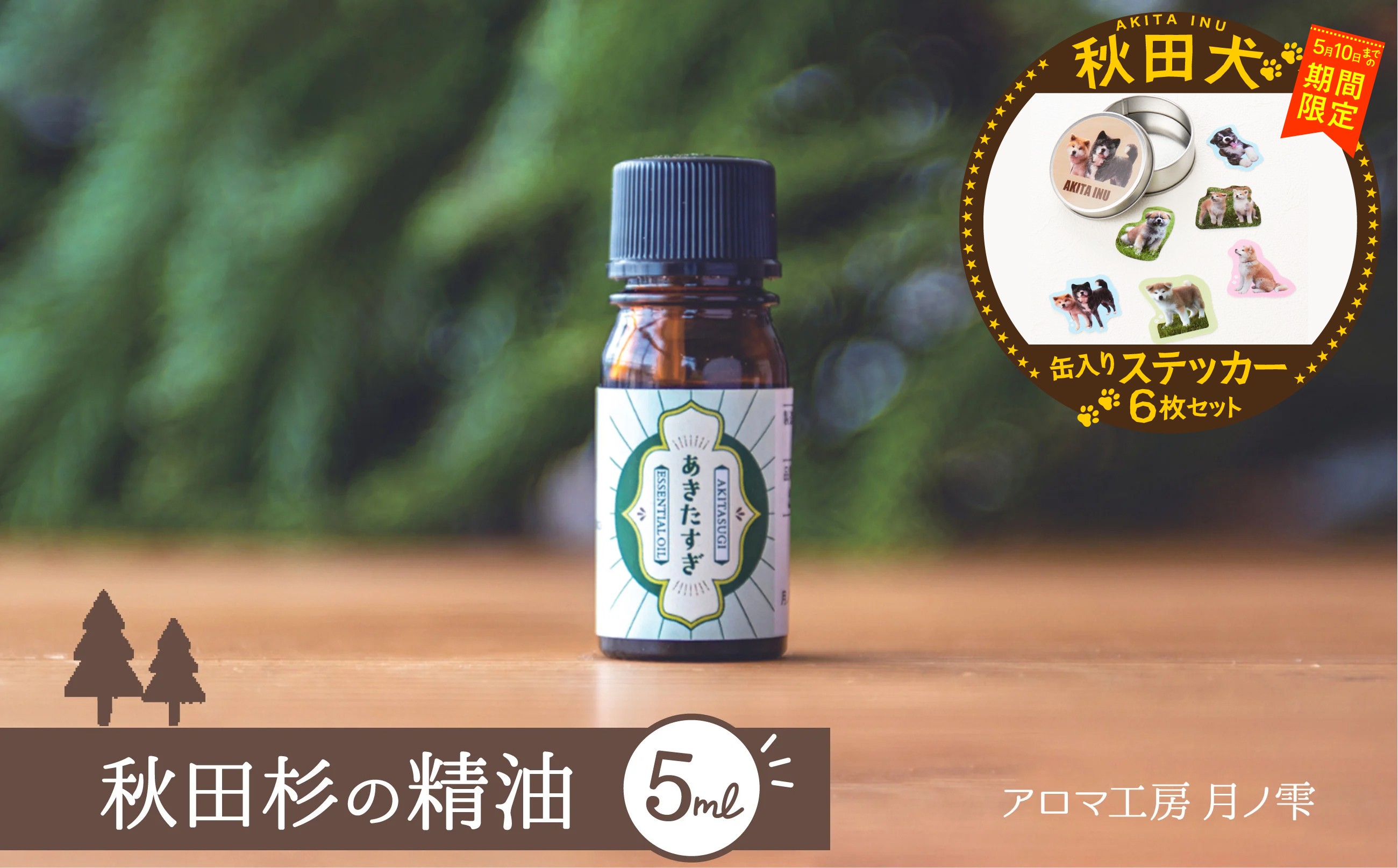 秋田杉のやさしい香りと柑橘と同じ成分の爽やかな香りのする和精油です 【マルイプロデュース】 【受付期間2026年2月4日12時~2026年5月10日】 秋田杉の精油・秋田犬フレークステッカー6枚セット(缶入り) 85P7001 / 東北 秋田 大館 おおだて 大館市 アロマ フレグランス ディフューザー リラックス 癒し 爽やか リフレッシュ 精油 アロマオイル 小型 ギフト プレゼント 贈り物 母の日 父の日 敬老の日 誕生日 記念日 お祝い 祝