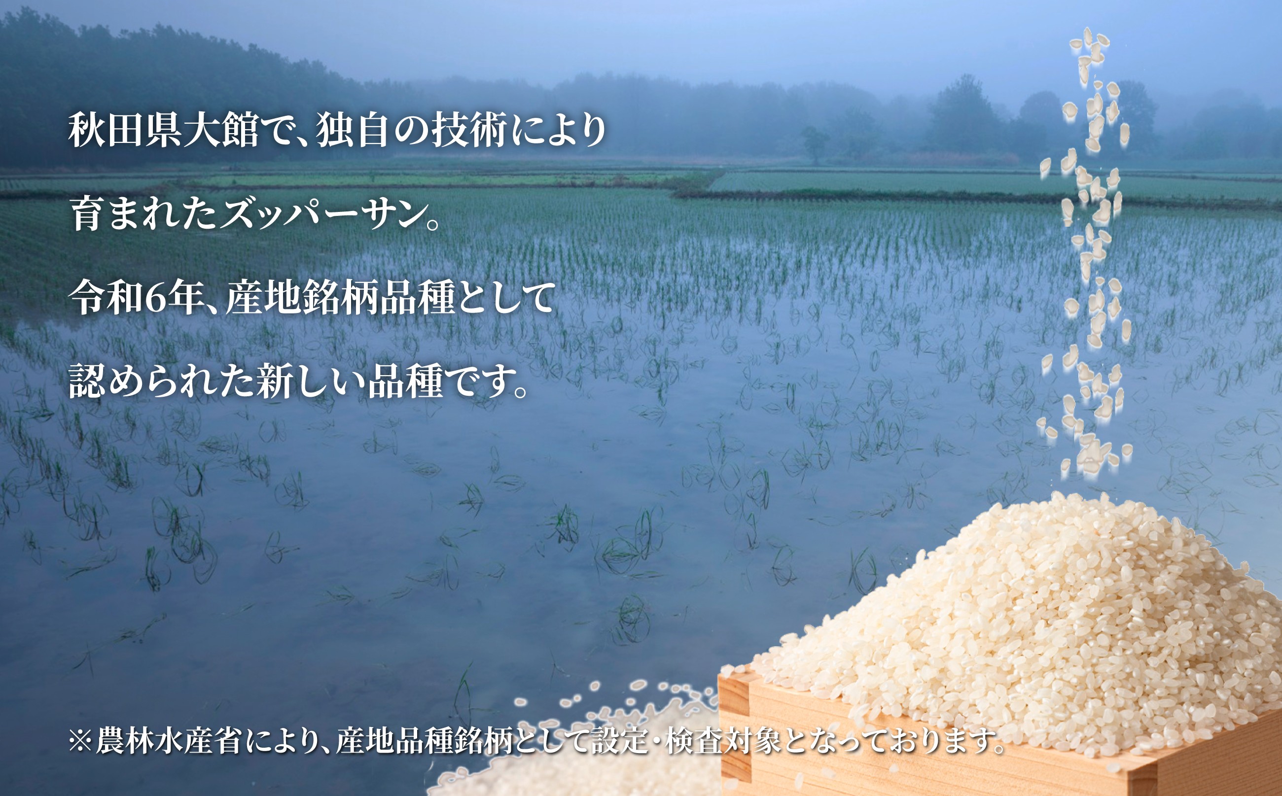 北の大地、穏やかな風と清らかな米代川からの水が育む米の宝庫。そんな厳しい自然の中で生まれたのが「ズッパーサン」。