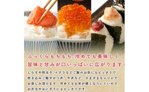 炊き立てはもちろん、冷めてもおいしいお米です。また、お弁当にもぴったりです。