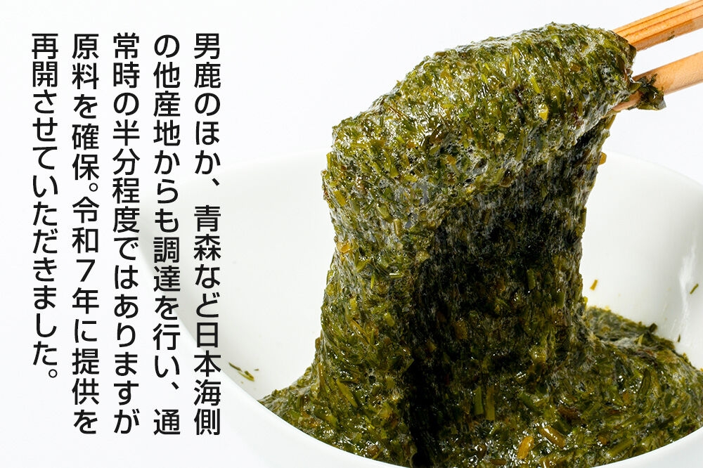 2025年、男鹿のほか、青森や京都などの日本海側の他産地からも調達を行い、通常時の半分程度ではありますが原料を確保することができたため、このたび男鹿なびにてぎばさの製造を引継ぎ、提供を再開させていただく運びとなりました。