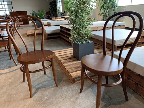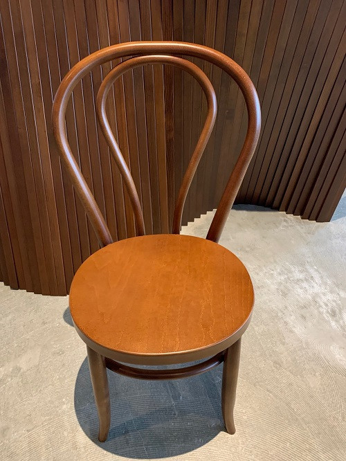 座面の柔らかな曲線「スーパー楕円」を特色とし、日本唯一の曲木専門工房である秋田木工の伝統技術により製造された、木のぬくもりが感じられる逸品。