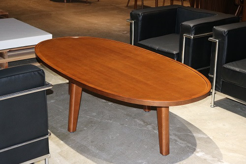 天板の柔らかな曲線「スーパー楕円」を特色とし、日本唯一の曲木専門工房である秋田木工の伝統技術により製造された、木のぬくもりが感じられる逸品。カフェ・オフィス・リビングなどに調和するデザインのローテーブル。