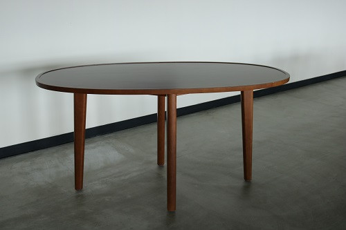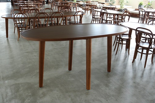 天板の柔らかな曲線「スーパー楕円」を特色とし、日本唯一の曲木専門工房である秋田木工の伝統技術により製造された、木のぬくもりが感じられる逸品。カフェスペースや、オフィスのミーティングエリアなどに調和するデザインのハイテーブル。