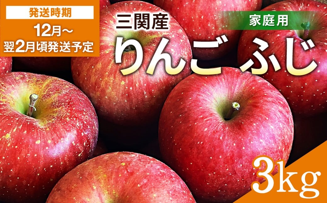 三関産 りんご ふじ 家庭用 3kg 秋田県 湯沢市 地場産 果物 フルーツ 林檎【三関果樹研究会】[J15102]