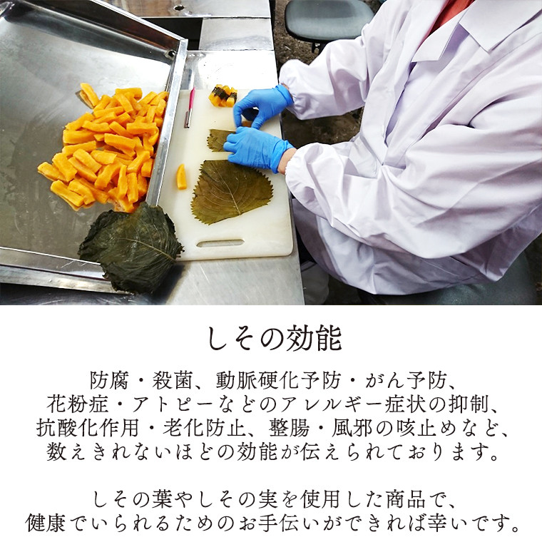 | 容量 | しそ巻大根 ミニパック:80g しそ巻大根 小袋:150g×2個 しそ巻大根 大袋:260g×2個 |