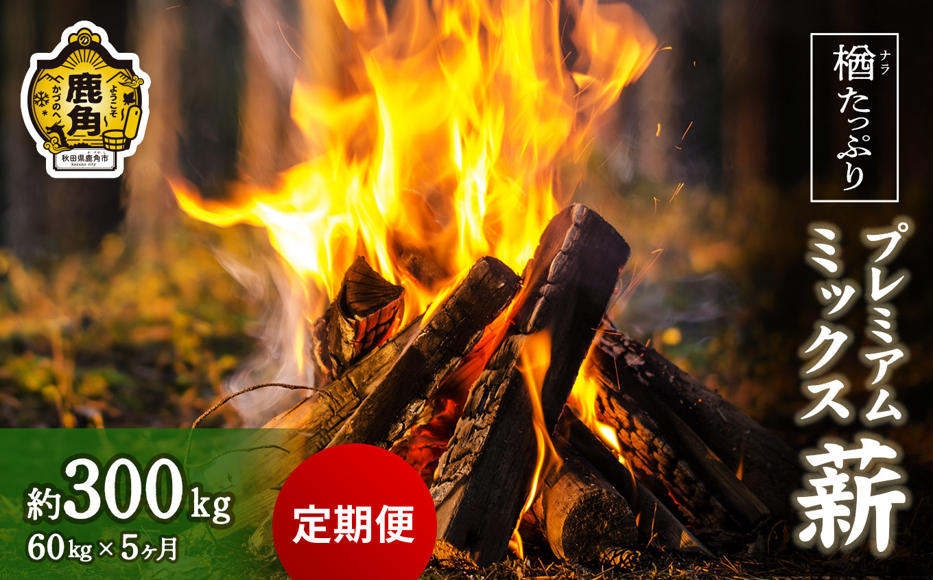 国定公園十和田・八幡平周辺産出の「広葉樹薪」 【定期便】楢(ナラ)たっぷり!プレミアムミックス薪 60kg×5回(総量300kg)【西村林業】 薪 広葉樹 ストーブ 暖炉 キャンプ アウトドア 燃料 秋田県 秋田 あきた 鹿角市 鹿角 かづの