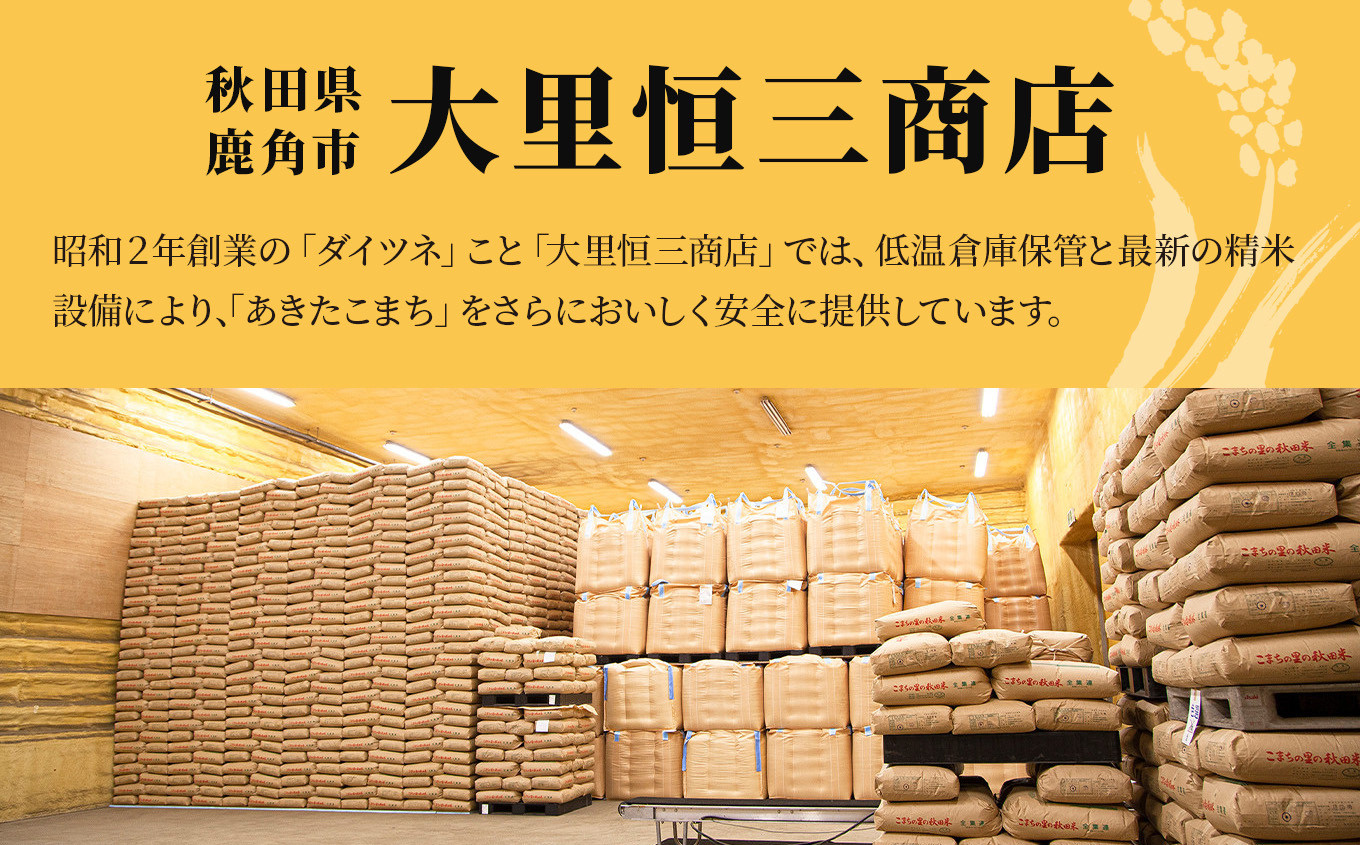 低温倉庫保管により、年間を通じて美味しいお米の販売が可能であり、集荷されたあきたこまち一等米の中から、食味計などを用いて厳選された本当に美味しいお米のみをお届けいたします。