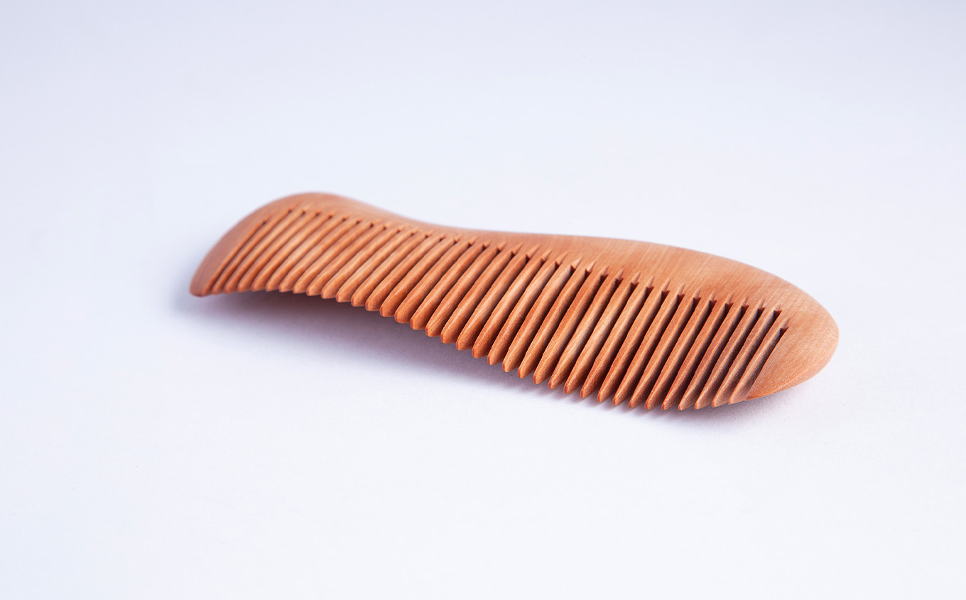 素材に斧折樺(オノオレカンバ)を使用した、マッサージ可能な新形状のくし。 古来の形状に立体的なひねりを加えることで、モダンな印象のくしに仕上がっており、そのバランスが絶妙で美しい商品です。