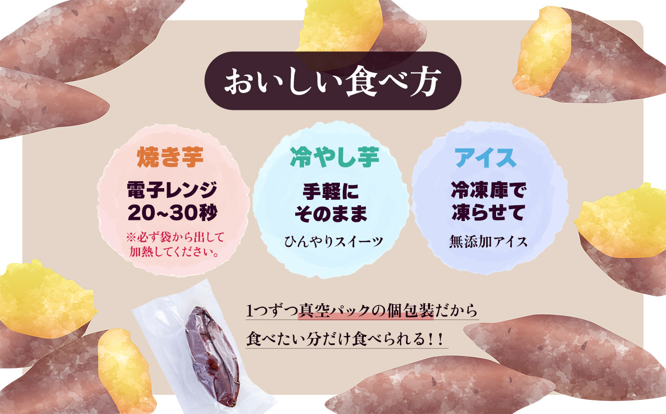 | 容量 | さつまいも(焼き芋):6本入(冷蔵) シルクスイート or 紅はるか ※品種は選択できません |