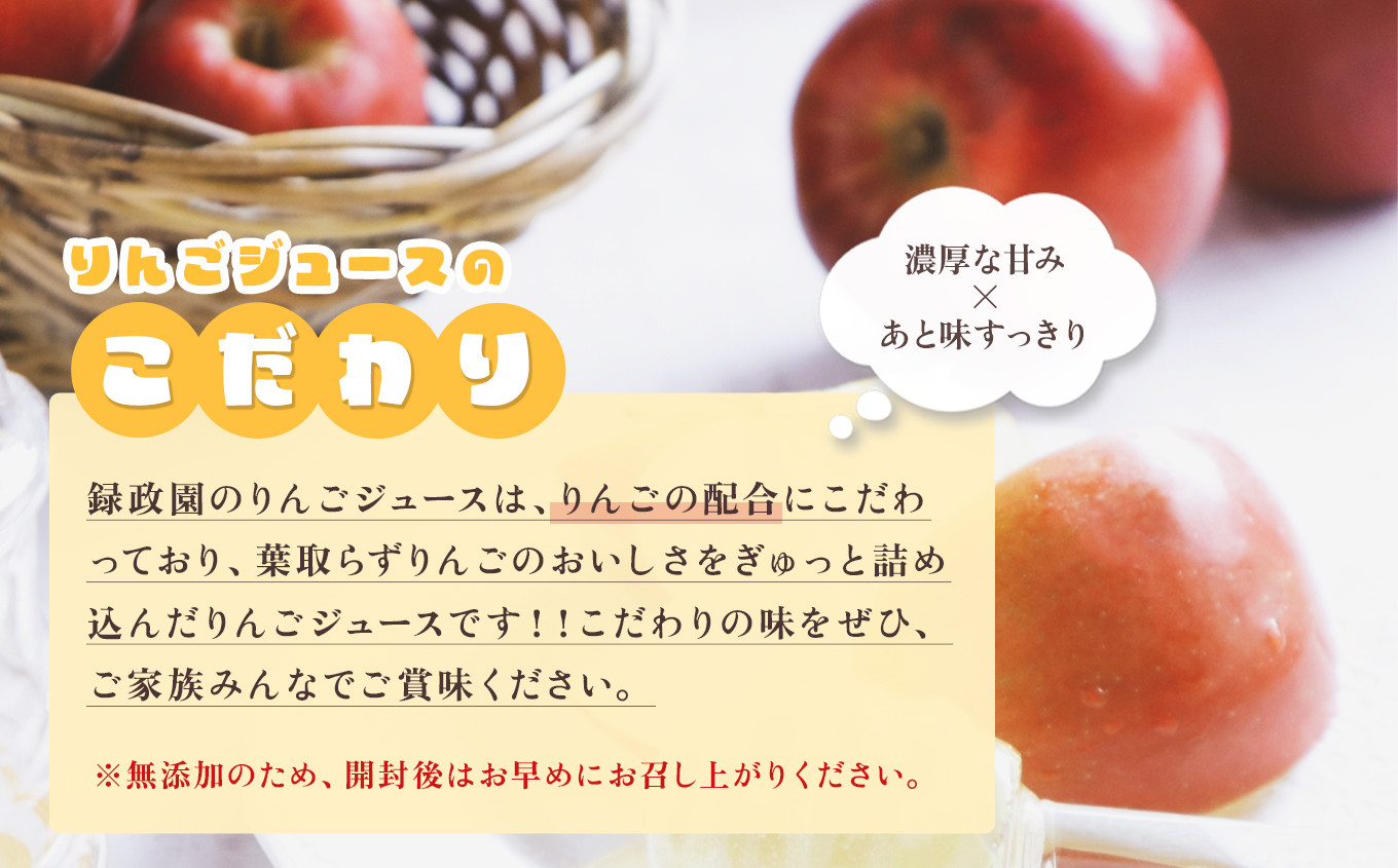 栄養をたっぷり蓄えた葉取らずりんごを使用し、りんごの配合にもこだわったりんごジュースです!