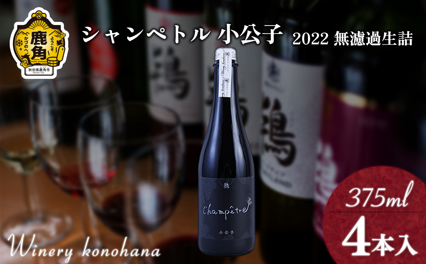 スッキリ感をそのままに繊細で柔らかな泡の口当たり シャンペトル 小公子2022無濾過生詰 赤 辛口(微発砲)375ml×4本 【ワイナリーこのはな】MKpaso ワイン 日本ワイン ギフト グルメ ワイナリー 国産 県産 鹿角産 秋田県 秋田 あきた 鹿角市 鹿角 かづの