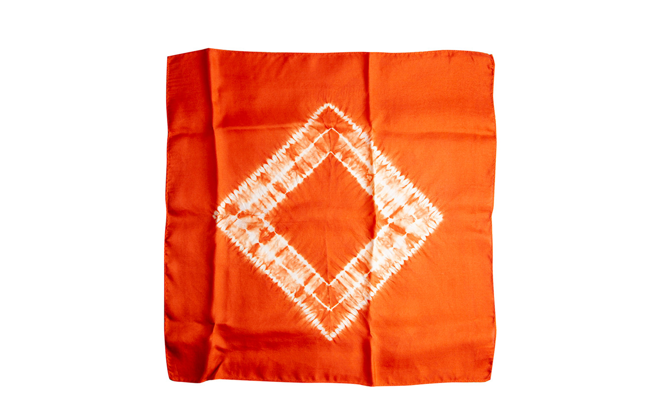 古代式 鹿角茜染 シルクハンカチ 立枠絞【YR601】 ( 縦43cm×横4…