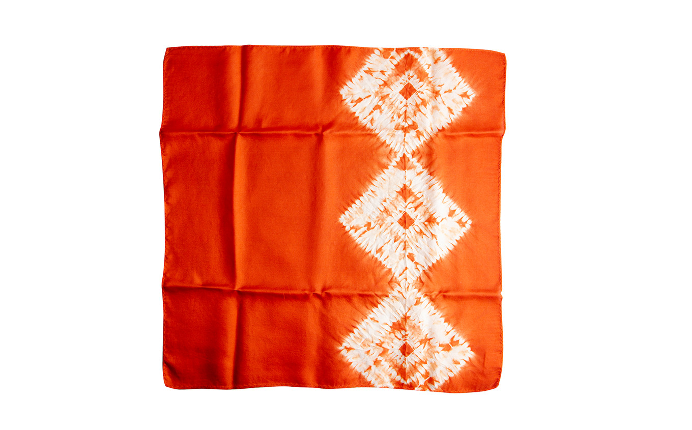 チョイス限定 万葉の香気~日本茜で染めたかづの茜~ 古代式 鹿角茜染 シルクハンカチ 続き枡絞【YR603】 ( 縦43cm×横43cm )【一般社団法人 鹿角紫根染・茜染研究会】