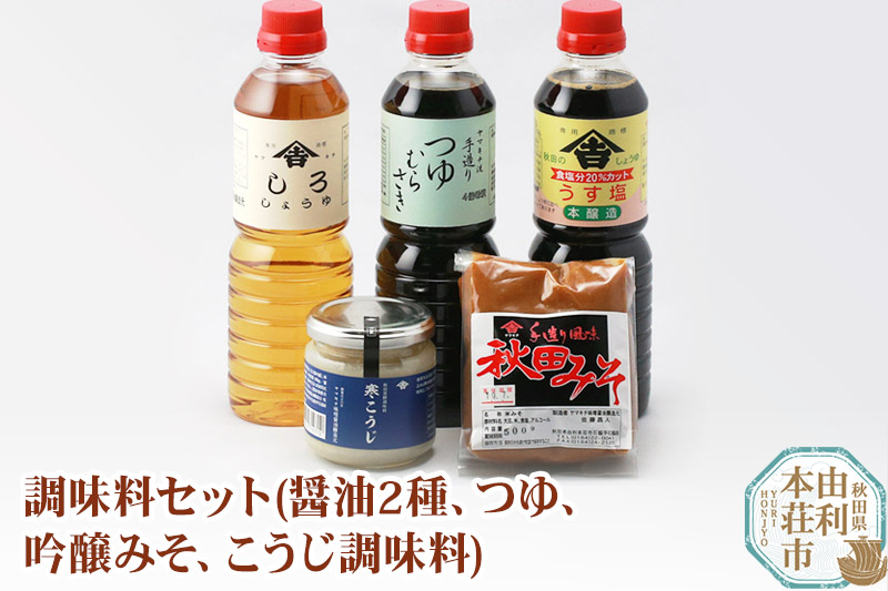 老舗 ヤマキチ味噌醤油醸造元 調味料セット5種類 (うす塩しょうゆ・しろしょうゆ・つゆむらさき・吟醸みそ・寒こうじ)