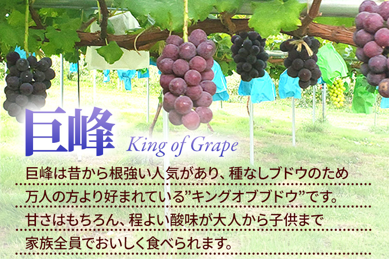 巨峰は昔から根強い人気があり、種なしブドウのため万人の方より好まれている”キングオブブドウ”です。