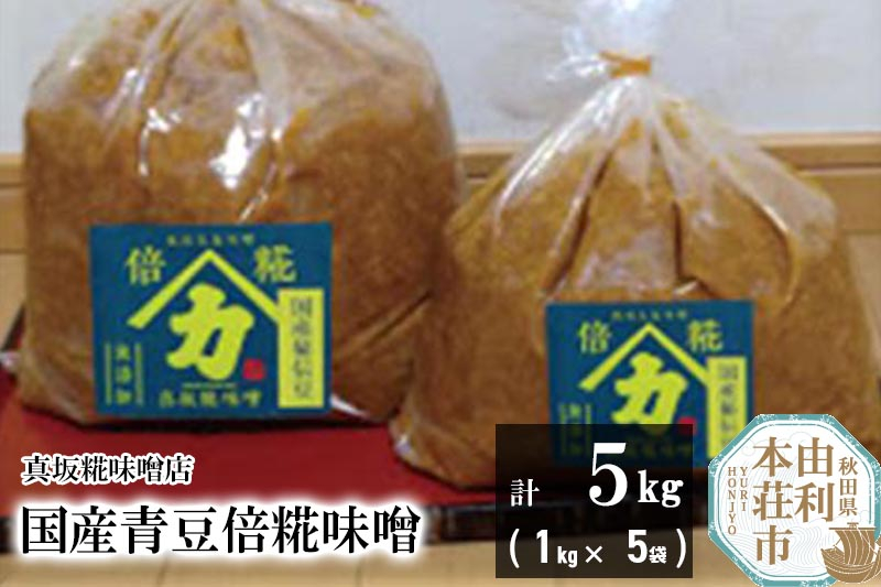 独自の配合で倍以上の糀を入れまろやかで深い味わいの味噌に仕上がりました。 国産青豆倍糀味噌 計5kg (1kg×5袋)