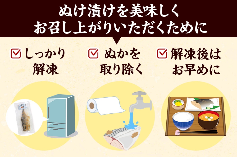 自然解凍し、ぬかを軽く水洗いまたは拭き取ってから魚焼きグリルで焼いてお召し上がりください。