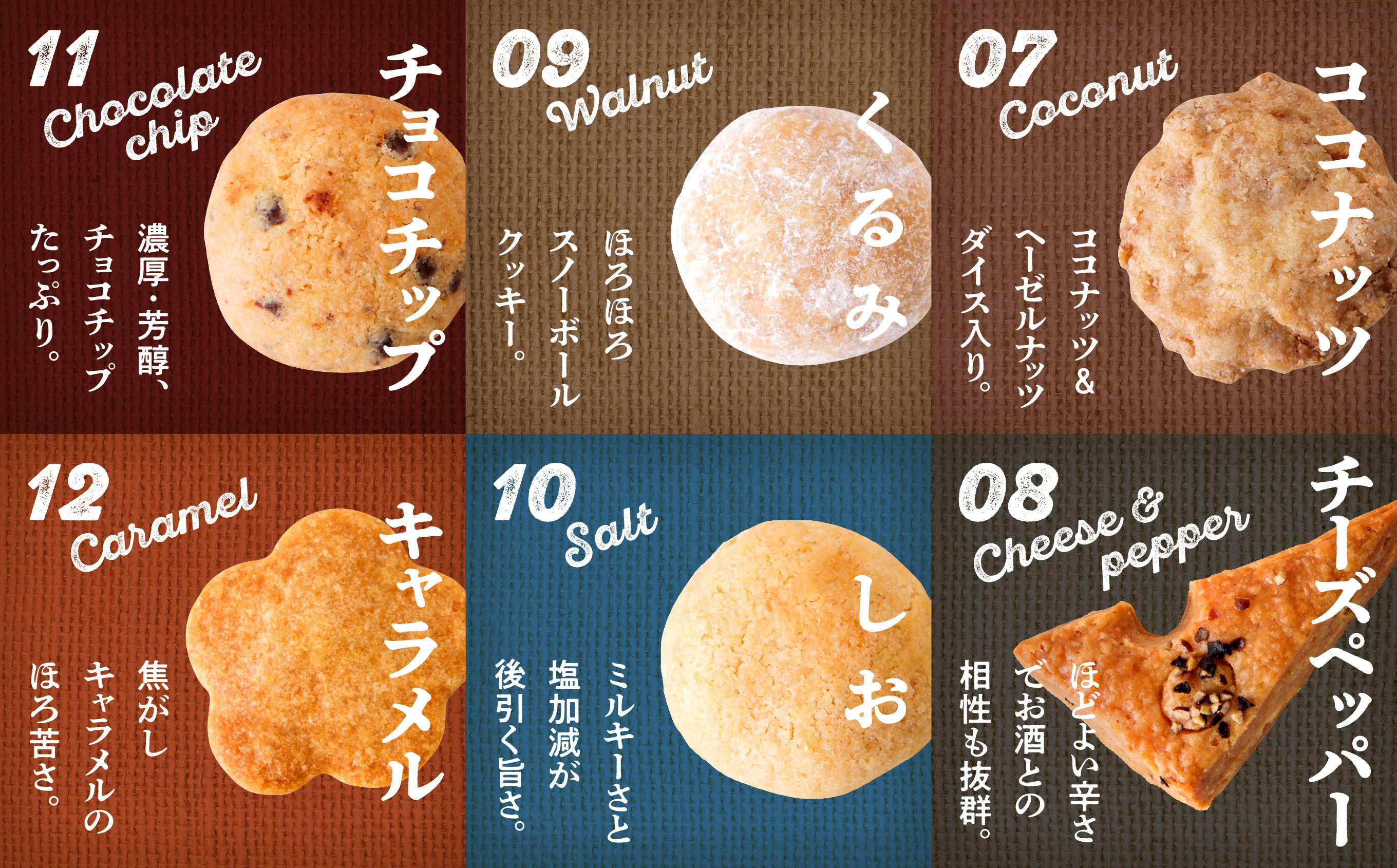 | 容量 | ■かぼちゃ(50g)×1袋※ ■さつまいも(45g)×1袋※ ■紫芋(50g)×1袋※ ■ラズベリー(45g)×1袋 ■チーズ(40g)×1袋 ■チョコナッツ(50g)×1袋 ■ココナッツ(50g)×1袋 ■チーズペッパー(50g)×1袋 ■くるみ(60g)×1袋 ■しお(50g)×1 ■チョコチップ(50g)×1袋 ■キャラメル(50g)×1袋 計12袋 ※印はお申し込みの時期により別の焼き菓子に変更になる場合がございます |