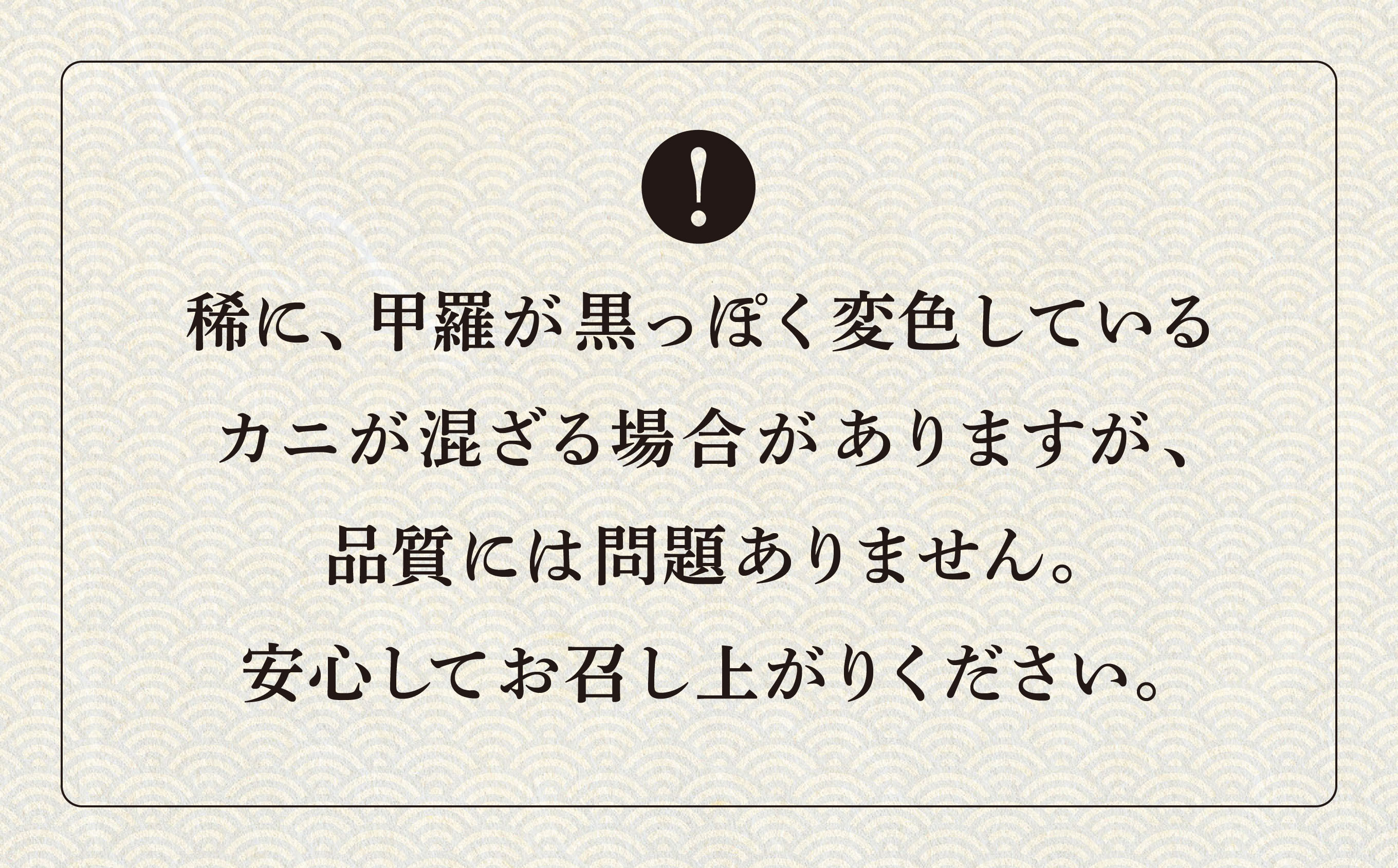 ※稀に甲羅が黒っぽく変色している蟹が混じることがあります。品質には問題ございません。