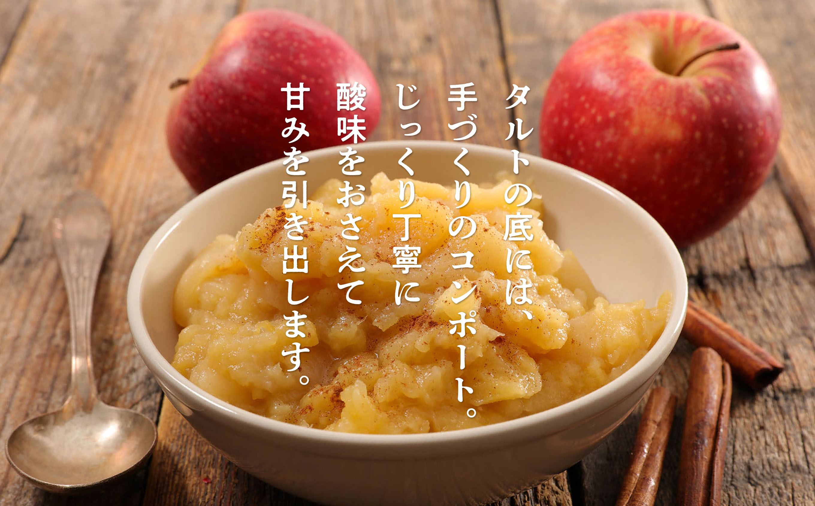 中に入っているりんご果肉の酸味とチーズの甘味が、サクサクのタルト生地と相性抜群です。