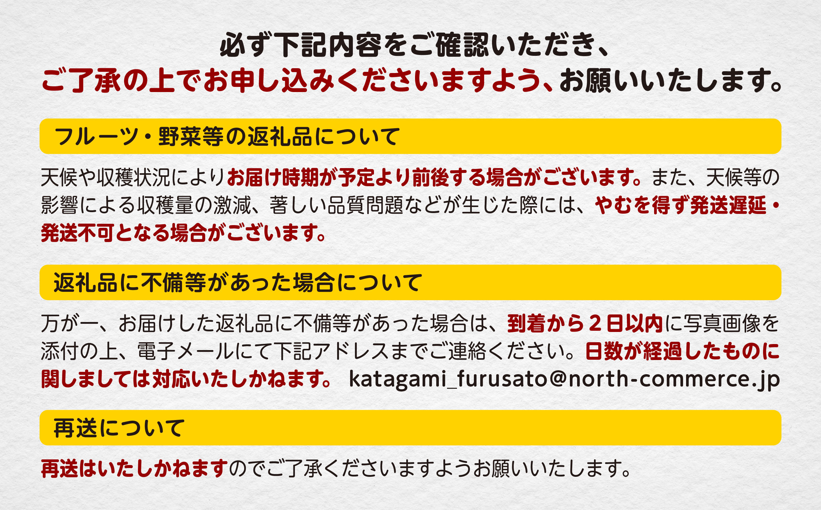 尚、長期不在等によりお礼の品をお受取りできなかった場合、再発送はできません。