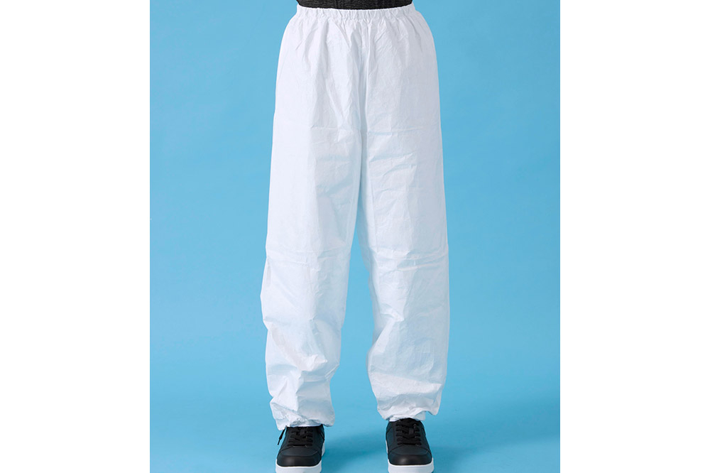 塗装や塗料噴霧、自動車の修理など、塗料や油汚れの激しい環境や軽い水飛沫のある作業時の着用に適した、軽量で高強度のポリエチレン不織布を素材とした防護服ジャンパー、ズボンのセット。