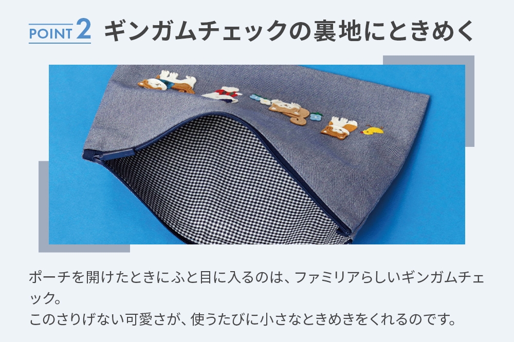 チョイスPayポイントと交換できる品 【ファミリア】ファミリアのフラットポーチ [familiar]子ども キッズ ベビー 赤ちゃん 孫 ギフト プレゼント お祝い 秋田犬 小物入れ シンプル ギンガムチェック デニム 青