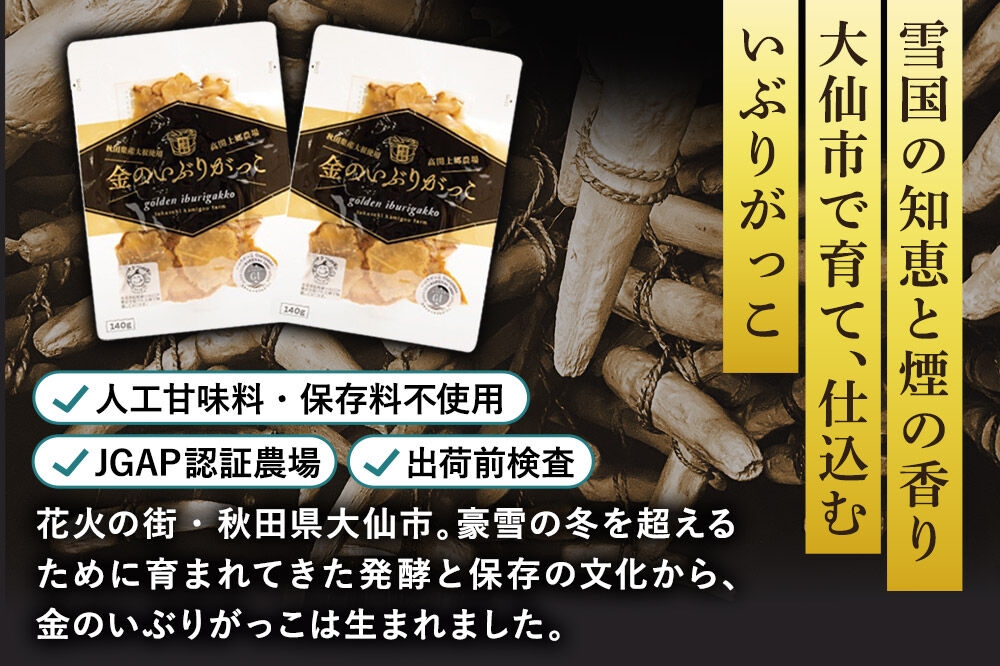 | 容量 | ■名称:金のいぶりがっこ スライス ■内容量:140g×10袋 ■原材料:大根(秋田県) 漬原材料/砂糖、米糠、食塩 着色料無、薄塩味(食塩相当量2.4g/100g) ■提供元:高関上郷農場 ■注意事項: ※ふるさと納税(寄附申込み)のキャンセル、返礼品の変更・返品はお受けできません。あらかじめご了承ください。 ■発送期日:10日を目安に発送(休業日除く) ※年末年始、長期休業や申込が殺到した際は、発送が遅れる場合がございます。 |