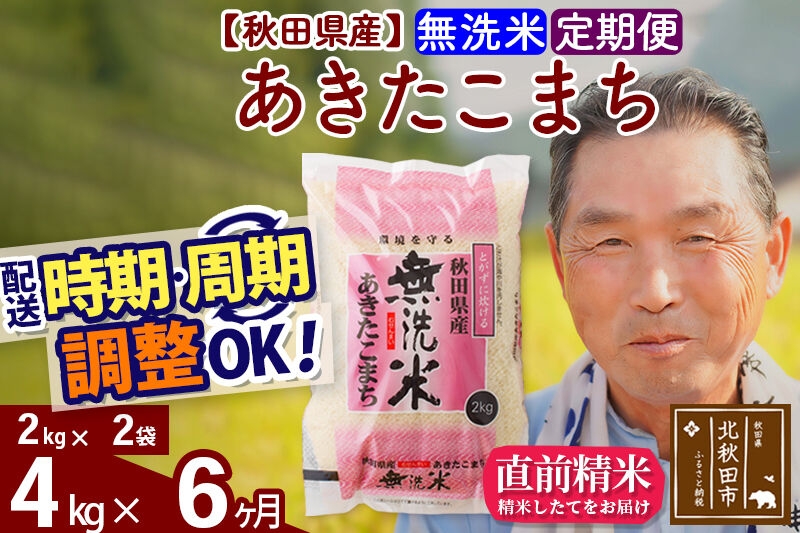 株式会社おおもり 令和7年産《定期便6ヶ月》秋田県産 あきたこまち 4kg【無洗米】(2kg小分け袋) 2025年産 お届け時期選べる お届け周期調整可能 隔月に調整OK お米 おおもり [おおもり 秋田 お米 あきたこまち 米どころ 東北 北秋田市 定期便 毎月お届け]