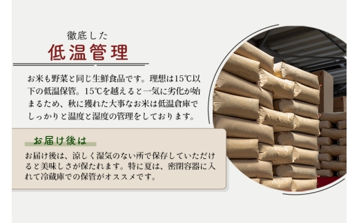 新米の味そのままを大切にした、いつまでも旬の「低温貯蔵」です。