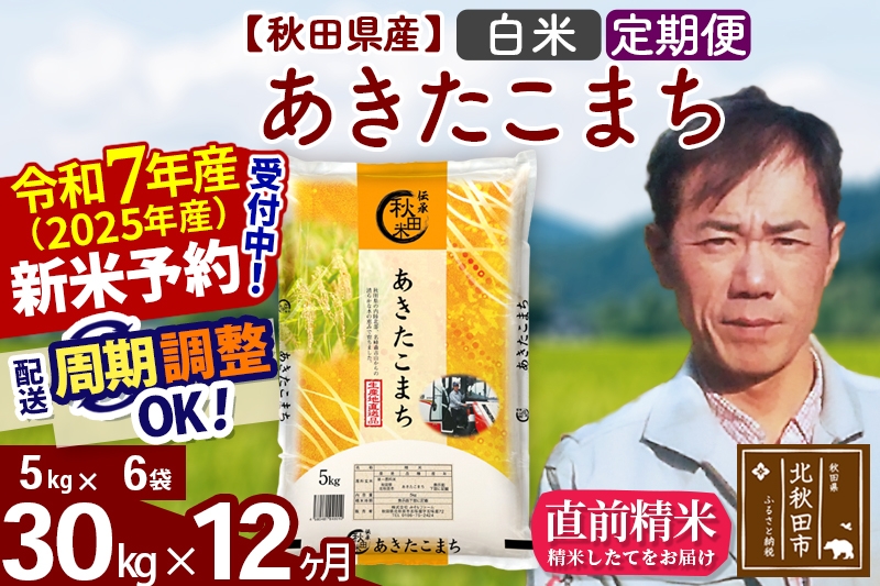みそらファーム あきたこまち ※令和7年産 新米予約※《定期便12ヶ月》秋田県産 あきたこまち 30kg【白米】(5kg小分け袋) 2025年産 お届け時期選べる お届け周期調整可能 隔月に調整OK お米 みそらファーム