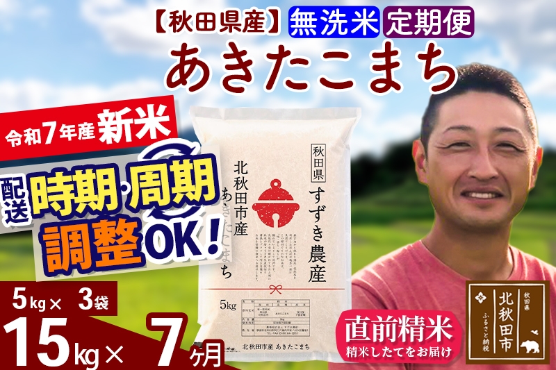 ※令和7年産 新米※《定期便7ヶ月》秋田県産 あきたこまち 15kg【無洗米】(5kg小分け袋) 2025年産 お届け時期選べる お届け周期調整可能 隔月に調整OK お米 すずき農産