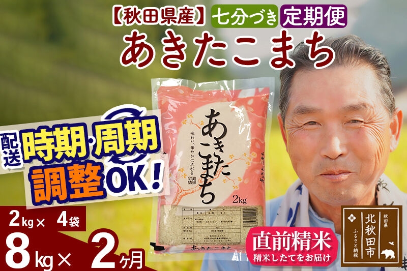 株式会社おおもり 令和7年産《定期便2ヶ月》秋田県産 あきたこまち 8kg【7分づき】(2kg小分け袋) 2025年産 お届け時期選べる お届け周期調整可能 隔月に調整OK お米 おおもり [おおもり 秋田 お米 あきたこまち 米どころ 東北 北秋田市 定期便 毎月お届け]