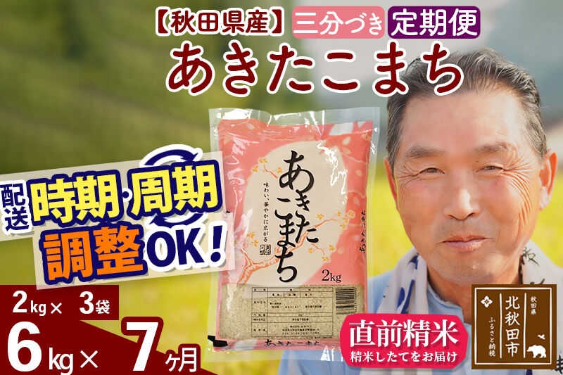 株式会社おおもり 令和7年産《定期便7ヶ月》秋田県産 あきたこまち 6kg【3分づき】(2kg小分け袋) 2025年産 お届け時期選べる お届け周期調整可能 隔月に調整OK お米 おおもり [おおもり 秋田 お米 あきたこまち 米どころ 東北 北秋田市 定期便 毎月お届け]