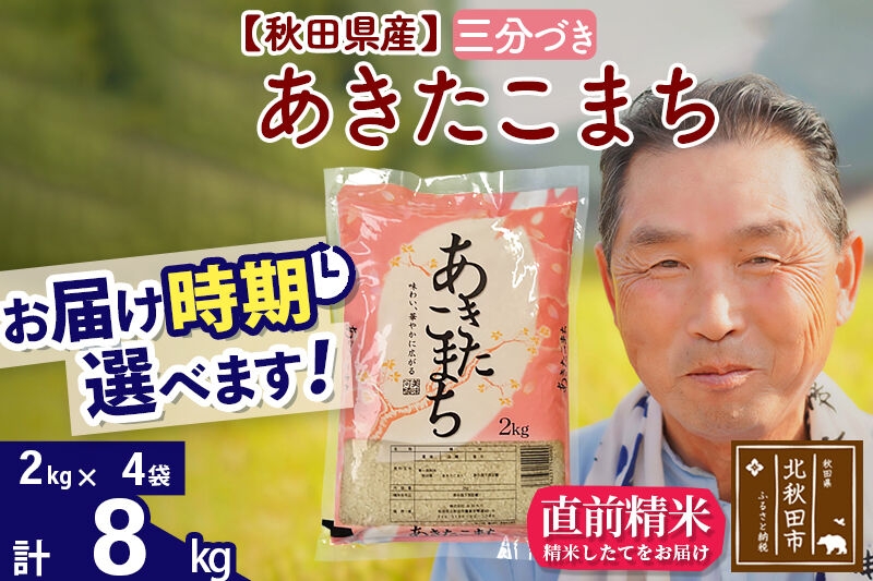 株式会社おおもり 令和7年産秋田県産 あきたこまち 8kg【3分づき】(2kg小分け袋)【1回のみお届け】2025年産 お届け時期選べる お米 おおもり [おおもり 秋田 お米 あきたこまち 米どころ 東北 北秋田市]