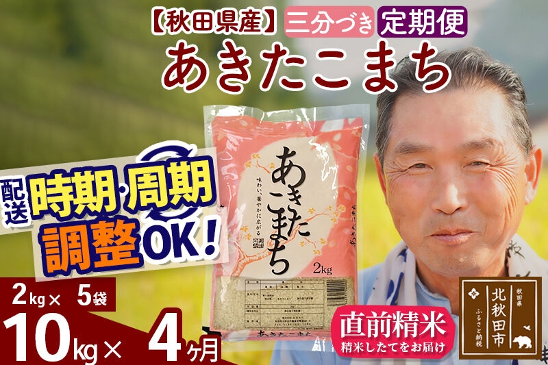 株式会社おおもり 令和7年産《定期便4ヶ月》秋田県産 あきたこまち 10kg【3分づき】(2kg小分け袋) 2025年産 お届け時期選べる お届け周期調整可能 隔月に調整OK お米 おおもり [おおもり 秋田 お米 あきたこまち 米どころ 東北 北秋田市 定期便 毎月お届け]