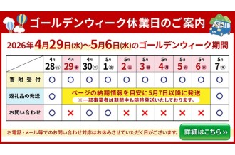 ・年末年始やGWなどの長期休業や天災の影響により、配送に遅れが生じる可能性がございます。