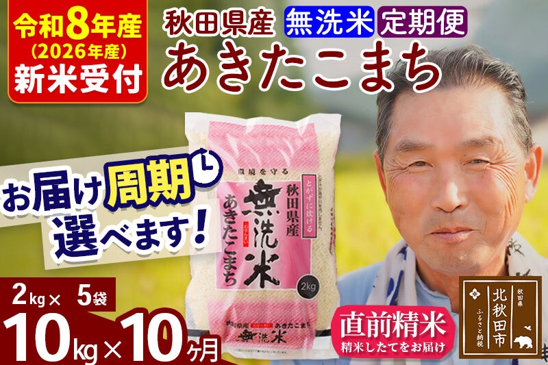 株式会社おおもり R8産 新米予約 《定期便10ヶ月》秋田県産 あきたこまち 10kg【無洗米】(2kg小分け袋) 2026年産 お届け周期調整可能 隔月に調整OK お米 おおもり [おおもり 秋田 お米 あきたこまち 米どころ 東北 北秋田市 定期便 毎月お届け]