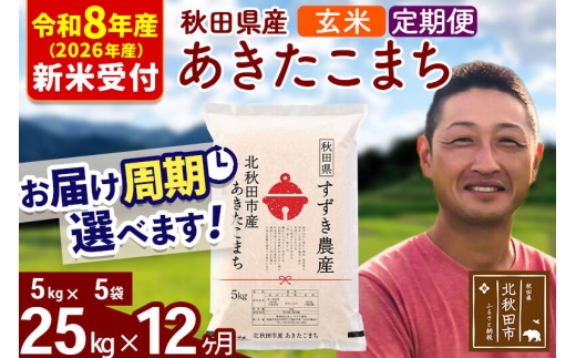 株式会社 すずき農産 ※R8産 新米予約※ 《定期便12ヶ月》秋田県産 あきたこまち 25kg【玄米】(5kg小分け袋) 2026年産 お届け周期調整可能 隔月に調整OK お米 すずき農産 [すずき農産 秋田 お米 あきたこまち 米どころ 東北 北秋田市 定期便 毎月お届け]