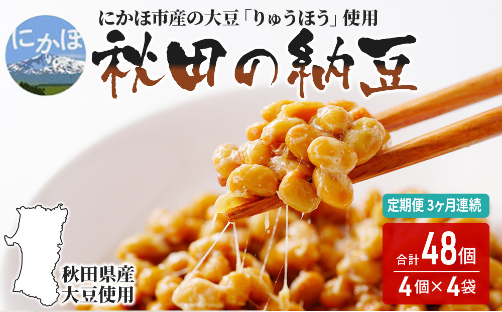 《定期便》 国産大豆のみを使用した秋田の納豆 16個(4パック×4袋)(16個×3ヶ月連続)