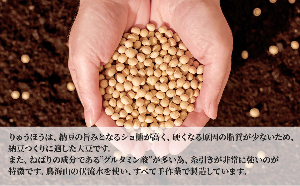 ■にかほ市産の大豆「りゅうほう」と、鳥海山の伏流水で作られた健康的な納豆です。