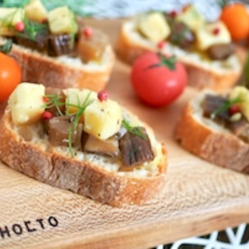 秋田が誇る「いぶりがっこ」を、定番の組み合わせであるチーズとともにオイル漬けにしました。