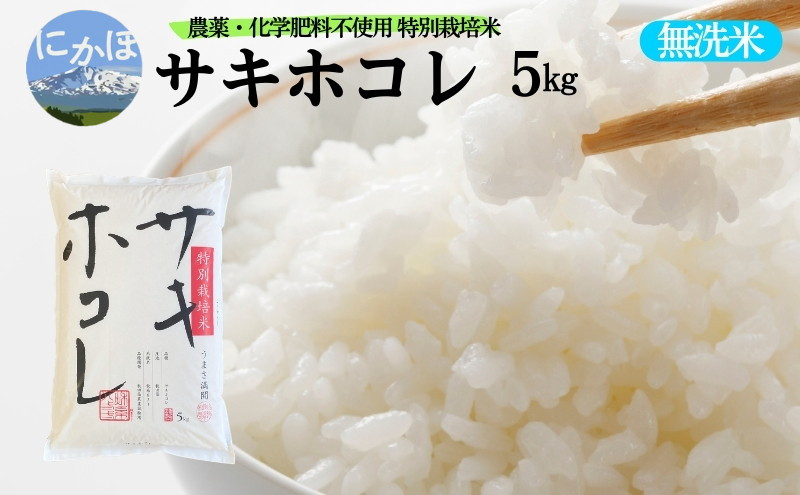 栽培期間中 農薬・化学肥料不使用【無洗米】特別栽培米サキホコレ5kg×1 令和7年産 秋田県 にかほ市 お米 米 こめ
