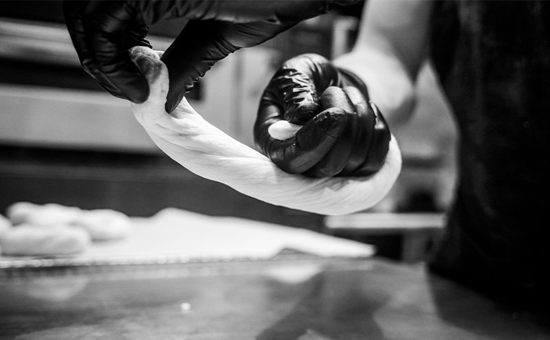 とろけるチーズを挟んだベーグルのホットサンドも当店人気商品の一つ。