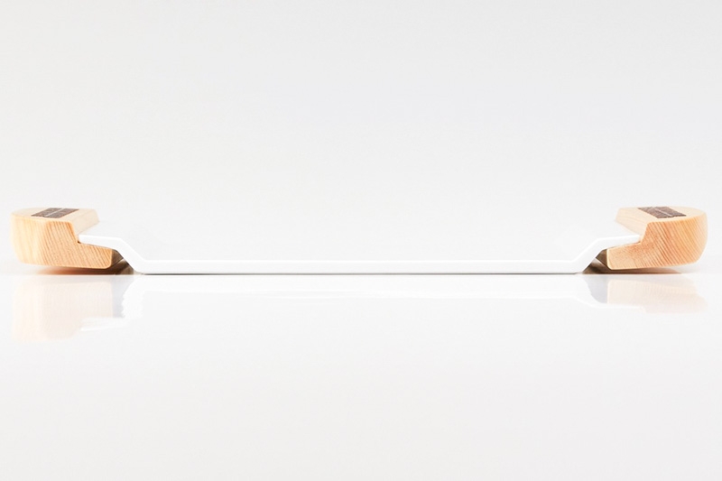美濃焼の磁器でできた本体に、ヒノキ製の持ち手部分を両端に取り付けた「Tsunagu」シリーズのシンプルかつモダンなパンプレートです。
